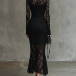 O vestido maxi Veronica combina renda delicada com um corte clássico que valoriza a silhueta de forma equilibrada. O tecido elástico proporciona conforto ao vestir, enquanto o acabamento em cauda de sereia acrescenta um toque de elegância discreta. Uma peça pensada para ocasiões especiais, jantares ou eventos onde o requinte faz a diferença.