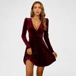 Este vestido curto de veludo com decote transpassado é a peça ideal para quem quer atrair todos os olhares com elegância e atitude. O tecido luxuoso aliado às mangas longas e ao recorte acinturado valoriza o corpo com classe, enquanto o comprimento equilibrado garante um visual poderoso e feminino. Perfeito para festas, jantares e eventos noturnos.