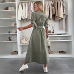 • Versatilidade – A cor verde oliva e o tecido tipo jeans tornam este vestido fácil de combinar. Ele pode ser usado com tênis para um look casual ou com saltos para um visual mais elegante.