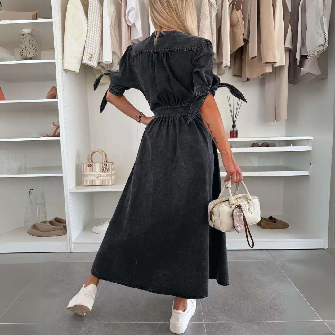 Quer também mostrar-se da sua melhor maneira? Aqueles momentos em que se sente completamente confortável e recebe elogio após elogio. Este vestido elegante faz exatamente isso por si! Com os seus botões de pressões e laços nas mangas, vai certamente atrair olhares!