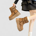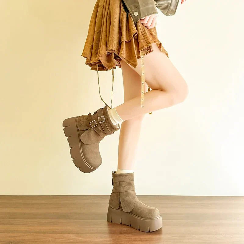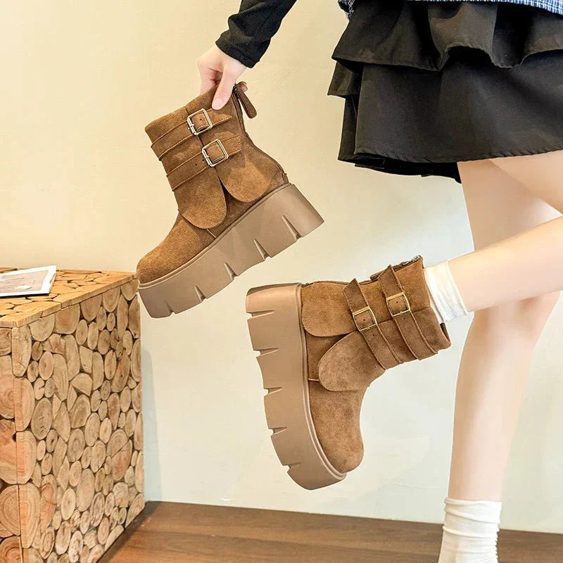 As Botas Valeria foram criadas para mulheres que valorizam tanto o estilo quanto o conforto. O interior forrado em algodão macio proporciona uma sensação de calor aconchegante, enquanto o design com cinto e fivela confere um toque sofisticado e atual. A sola grossa e antiderrapante garante estabilidade e confiança, tornando estas botas perfeitas para enfrentar o frio com elegância.